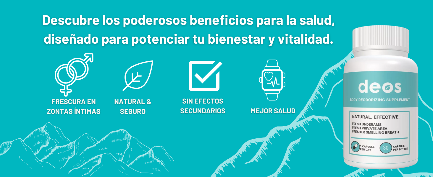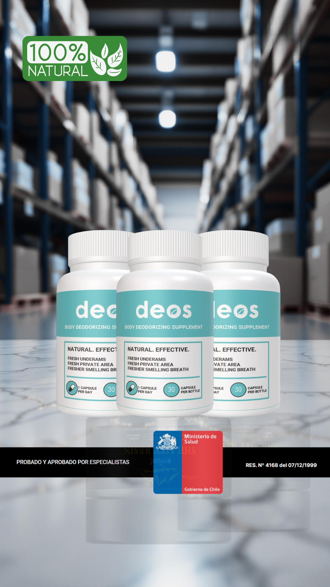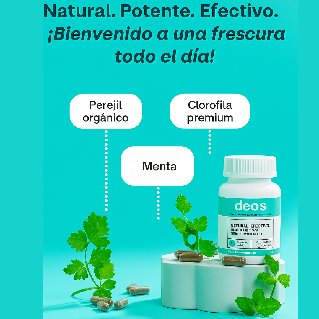 Deos™ combate el mal olor corporal desde su origen, a la vez que promueve la salud intestinal, hecho con fórmula totalmente natural. Ayuda a limpiar suavemente el cuerpo desde dentro, absorbiendo las toxinas del sistema antes que se excreten a través de la piel y el aliento.